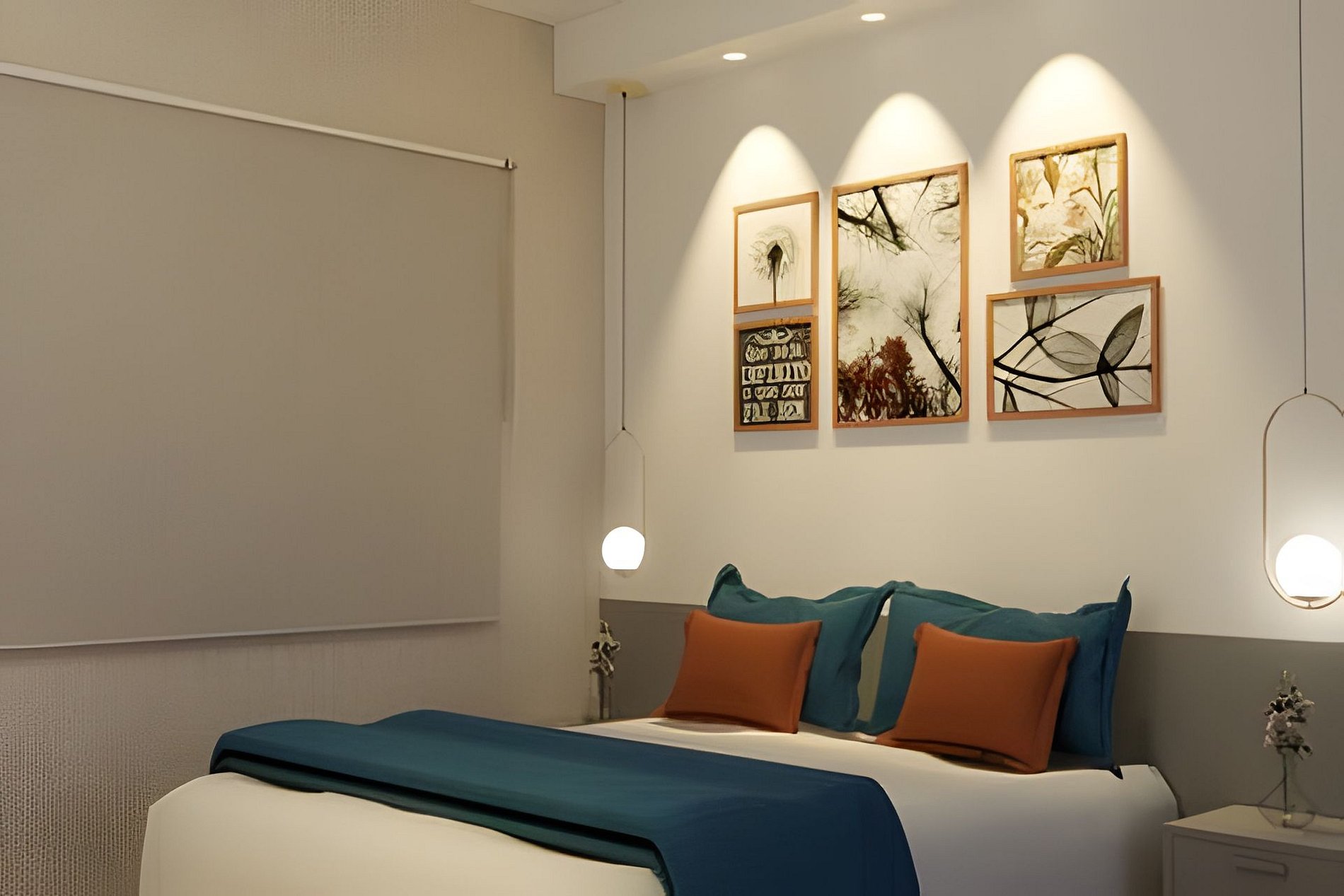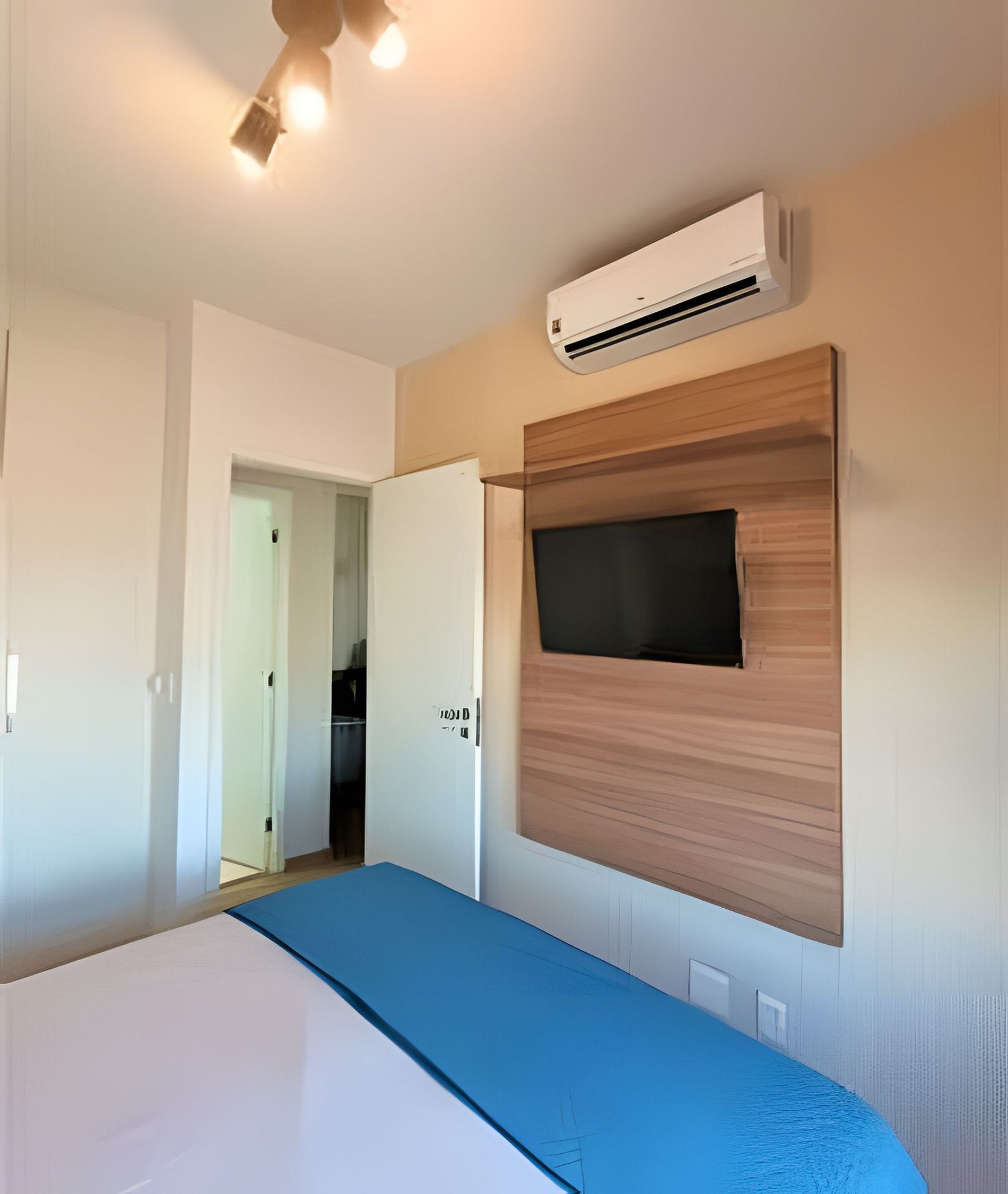 A iluminação foi projetada para que você tenha conforto e aproveite toda a luz natural que o apartamento também proporciona. No quarto, você encontrará uma espaçosa cama com enxoval de 400 fios, quatro travesseiros, almofadas e roupa de cama sempre impecável e confortável, para uma sensação relaxante e luxuosa, em todas as nossas hospedagens a roupa de cama é sempre higienizada por lavanderia profissional garantindo a qualidade do seu conforto,
